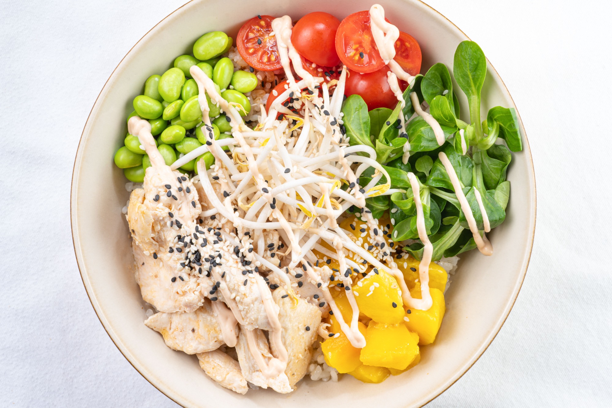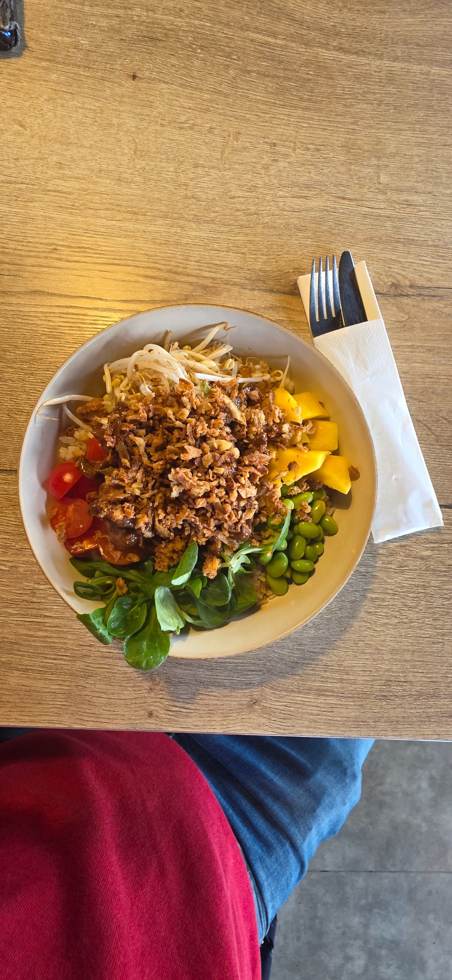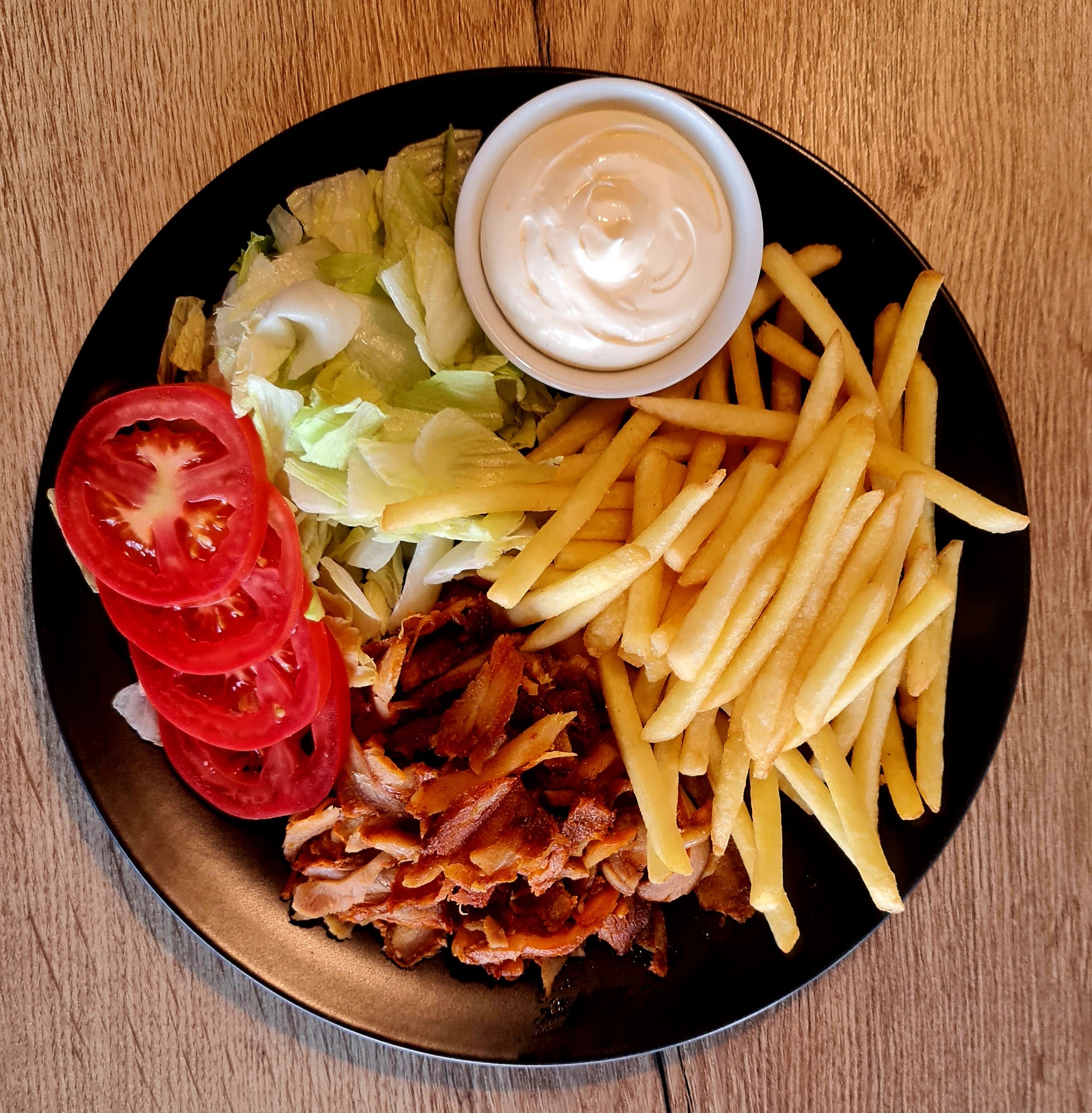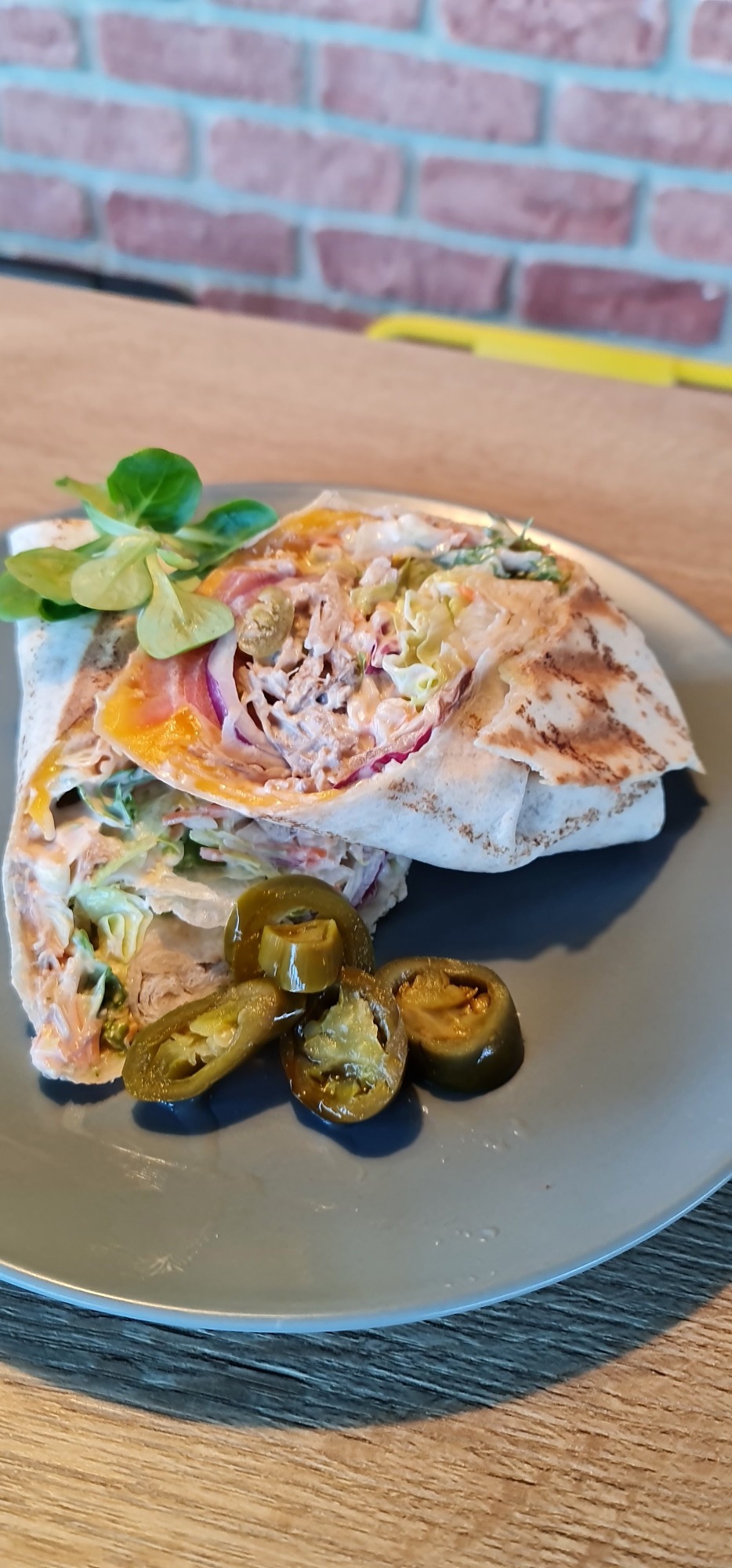150g šalát mix /ľadový šalát, lollo biondo, lollo rosso, frissee, mrkva/ 80g údený losos, 1 ks varené vajíčko, tortilla